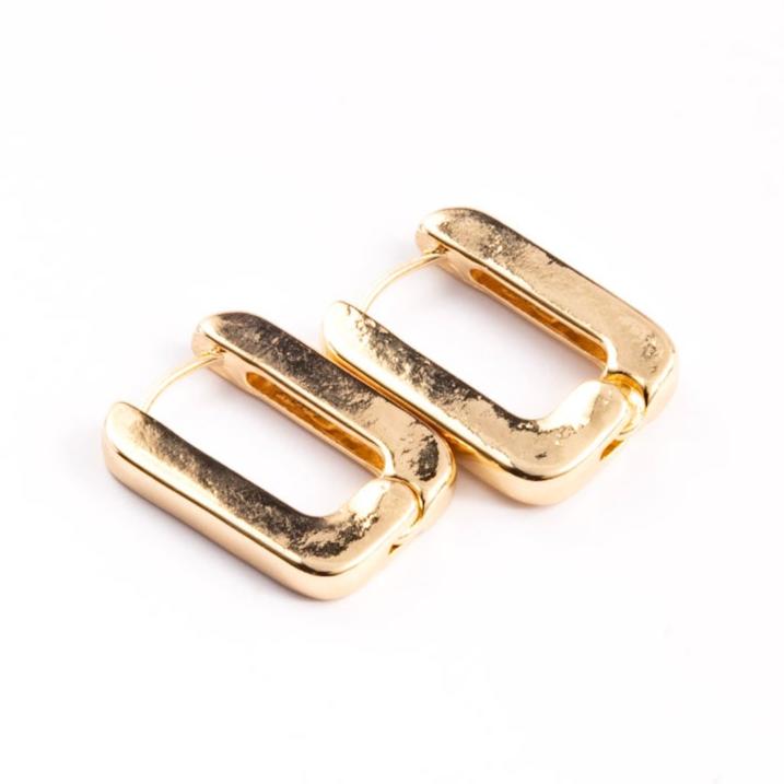 The Gold Modern U-shaped Hoops are timeless, measuring 0.5” by 1”, they blend subtle charm and appeal for any occasion. The secure fastening guarantees effortless wear and confidence all day long. From work to a romantic evening, these earrings exude sophistication, excellence, and ease for an enhanced look.