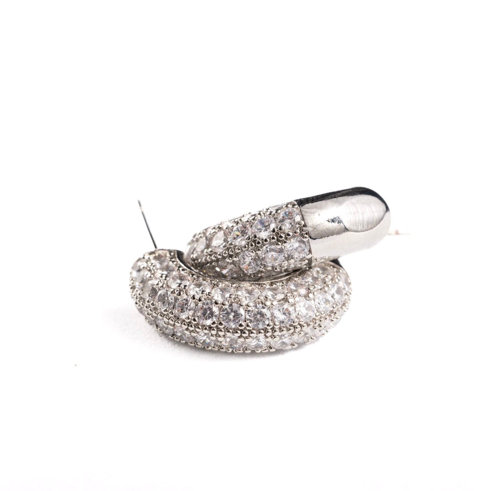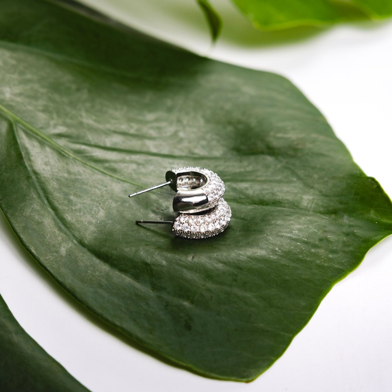 Capture the essence of luxury with our Leila Silver Pave Hoop Earrings. Its timeless, elegant design adds sophistication and glamour to any chic ensemble. The stunning surface reflects light, exuding an alluring sparkle with its cubic zirconia stones. The open C shape frames your face, radiating opulence and refinement. A must-have for a fashion-forward wardrobe.