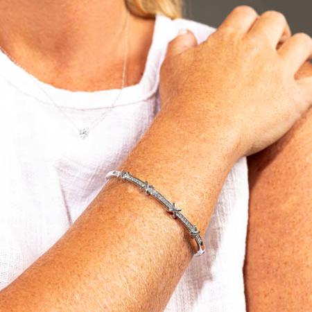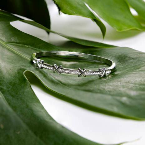 Express yourself with the stunning Silver Bangle, featuring eye-catching cubic zirconia stones. With a comfortable 2-inch diameter and a secure square bar clasp, it’s perfect for special occasions or everyday wear. Effortlessly elevate any look, whether paired with a cocktail dress or a casual outfit— the possibilities are endless!