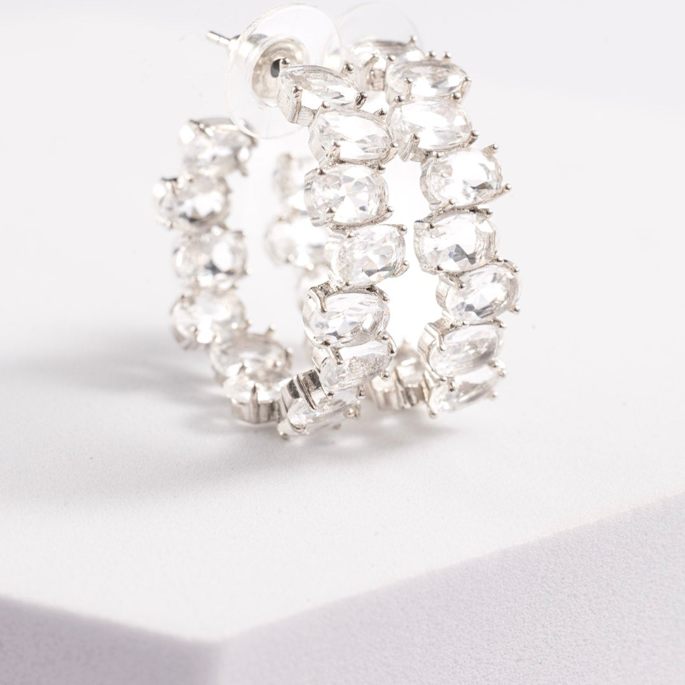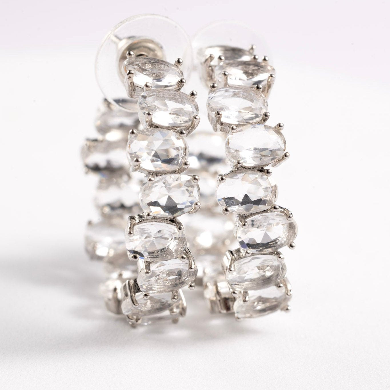Add an extra dose of sparkle to your look with these Oval Cut Silver Drop Earrings. With their unique design and shimmering cubic zirconia stones, these earrings effortlessly blend timeless elegance with contemporary charm. Embrace comfort, sophistication, and a touch of glamour with these exquisite earrings.