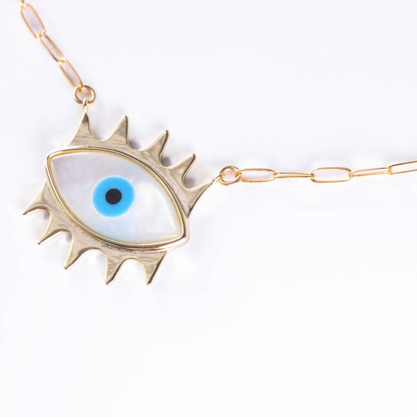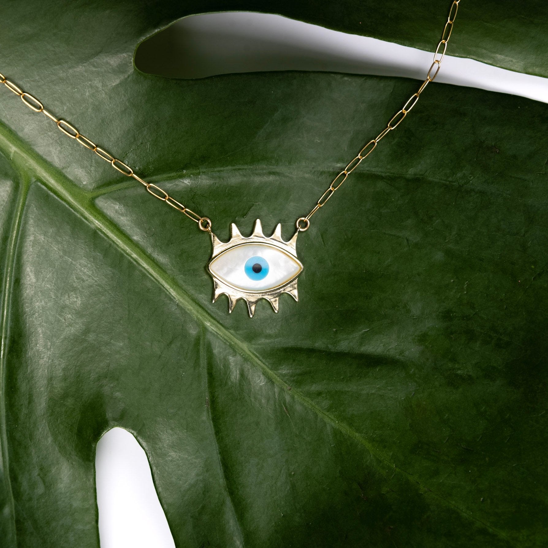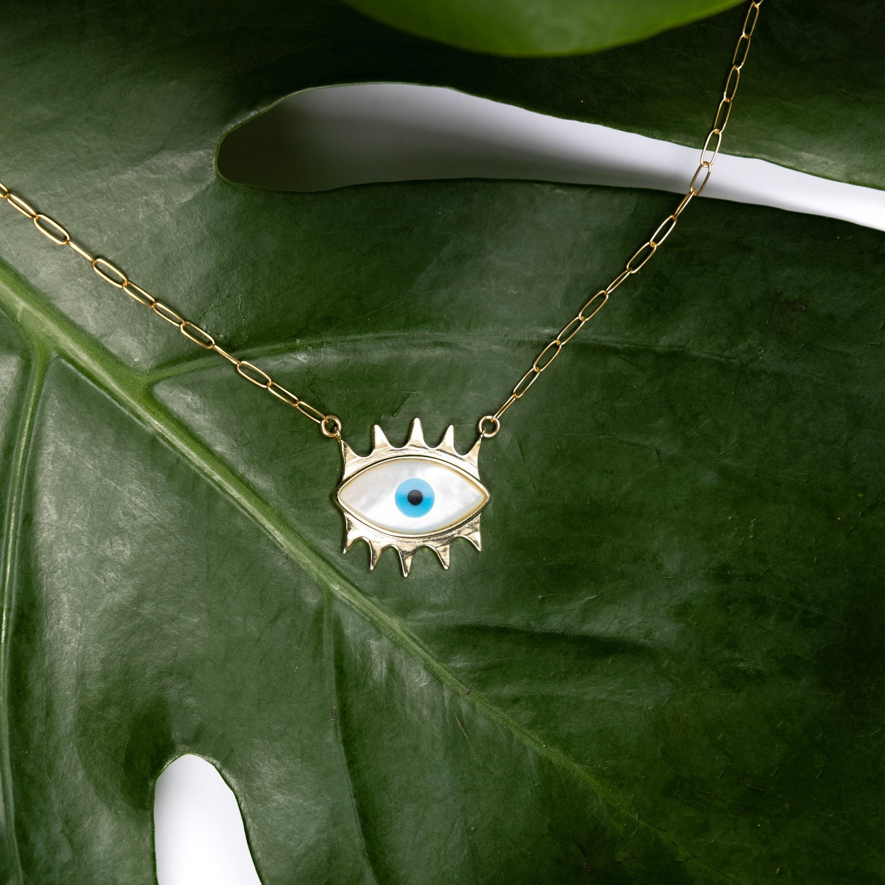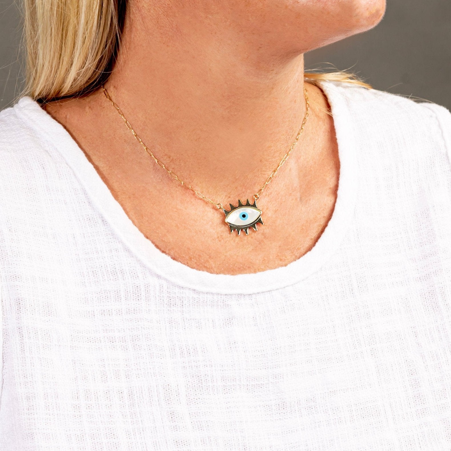 Infuse your style with elegance using the 14k Gold Plated Eye Pendant Necklace. Featuring an enamel Evil Eye pendant, this necklace symbolizes luck, fortune, positivity, calm, and success, warding off negativity. Whether for its symbolism or aesthetic charm, this timeless piece uplifts and inspires. It also makes a thoughtful, meaningful gift for birthdays, anniversaries, or any occasion.